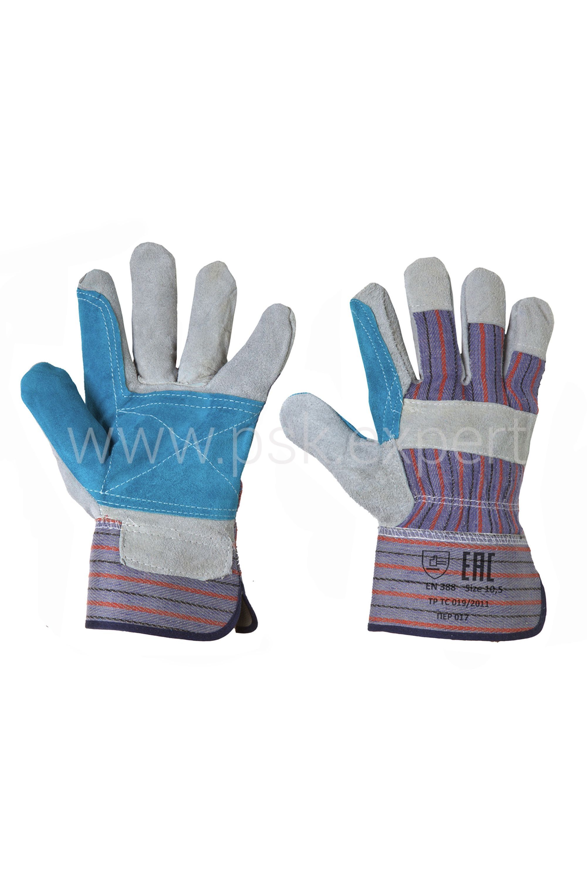 Перчатки выполнены из говяжьего кожевенного спилка (т.1,1-1,3мм) с вставками из плотного хлопка с рисунком полоска. Наладонник и указательный палец усилены дополнительным слоем спилка. Внутренний подклад из мягкого текстиля. Для удобства эксплуатации, в области запястья с тыльной стороны перчатки стянуты эластичной тесьмой. Манжет-крага сделан из хлопка, дополнительно усилен нетканым материалом. Перчатки отличаются повышенной прочностью, имеют шероховатую поверхность и обеспечивает отличное сцепление с различными поверхностями. Спилок защищает от механических воздействий: устойчив к истиранию и разрыву, проколам и порезам. Перчатки имеют универсальное применение, рекомендуются для строительных, монтажных, погрузочно-разгрузочных и других видов работ.