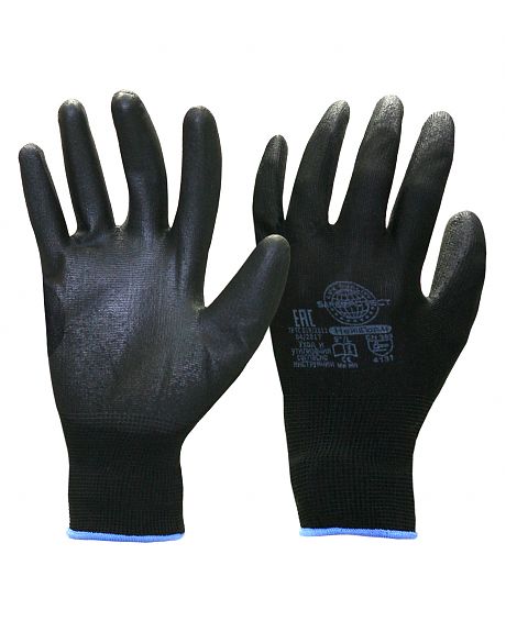 Перчатки из 100% нейлона, 13 кл. вязки, цвет черный,полиуретановое покрытие. Отличная защита от истирания и разрыва. Повышенная стойкость покрытия к маслам, нефтепродуктам, кислотам и щелочам. Отличная тактильная чувствительность, отличная воздухопроницаемость, широкий диапазон применения. Цветной оверлок.