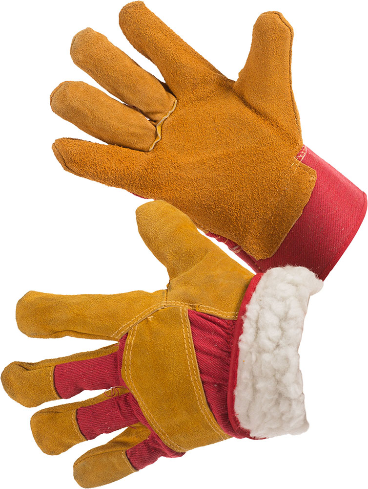 Перчатки комбинирванные, плотная смесовая ткань красного цвета со спилком сорта А желтого цвета, усиленная жесткая крага, утеплитель - искусственный мех 600 гр/м2. Мягкий спилк 1,3мм, двойные швы.Полный аналог перчаткам Русские Львы и Гренадер. Высокая стойкость к истиранию и разрыву, ограниченная защита от пореза и прокола.