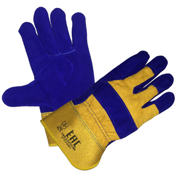 Перчатки комбинированные из качественного спилка КРС, толщина 1,2 мм, и плотной х/б ткани. Цельнокроеная ладонь из спилка. Флисовая подкладка на ладонной части, манжет - жесткая крага.