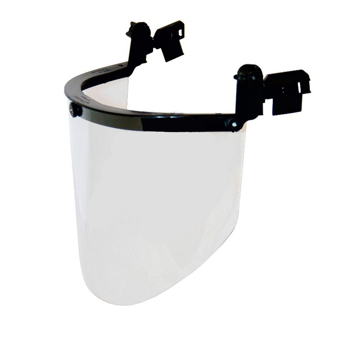 •крепление щитка к защитной каске осуществляется за счет подъемно-фиксирующего устройства, изготовленного из холодо- и термостойкого материала, устойчивого к износу и гарантирующего надёжную фиксацию лицевого щитка в двух положениях “вверх-вниз”. Конструкция позволяет одновременное ношение наушников противошумных;